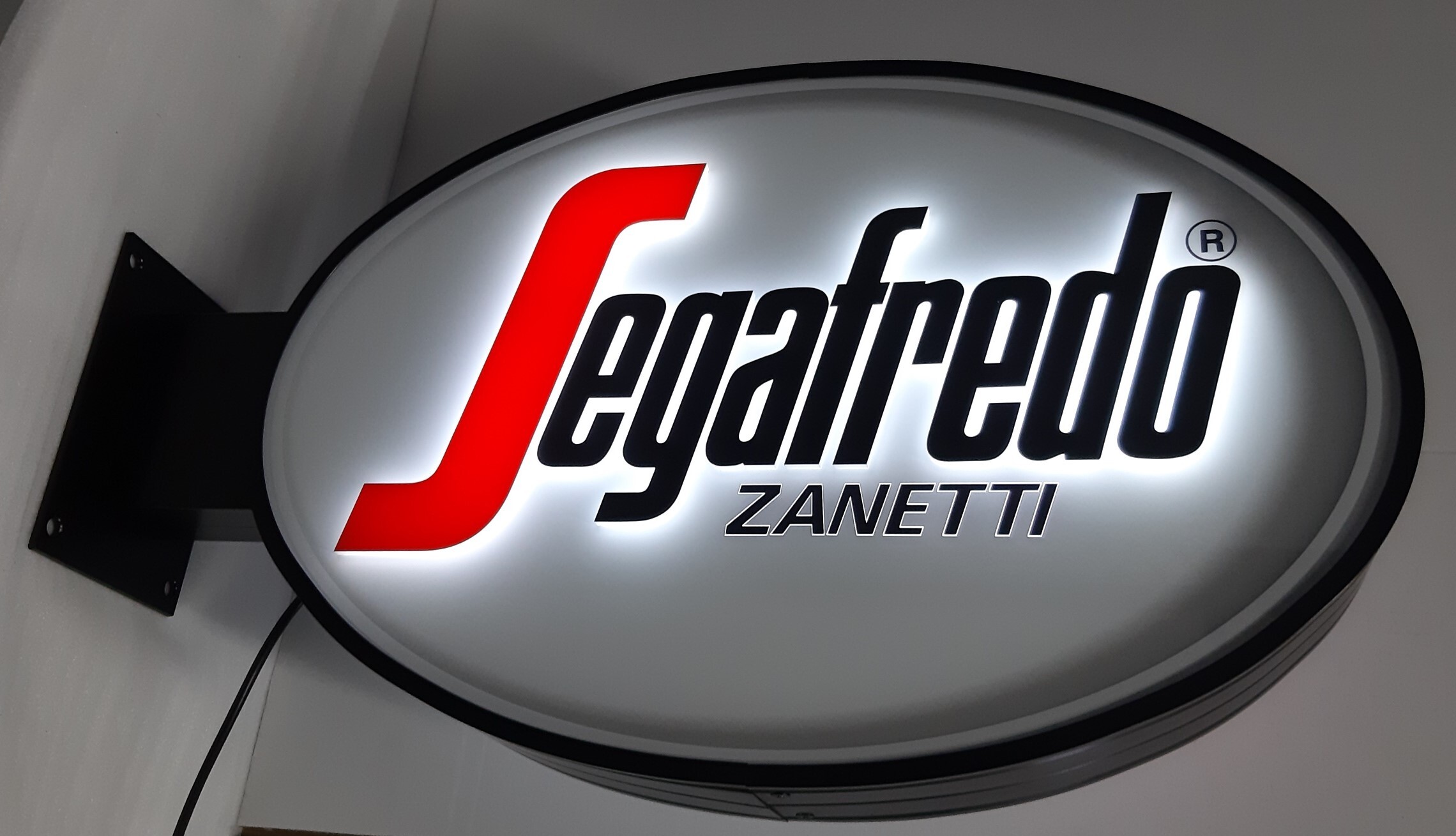 Dwustronny kaseton zewnętrzny Segafredo – reklama świetlna LED