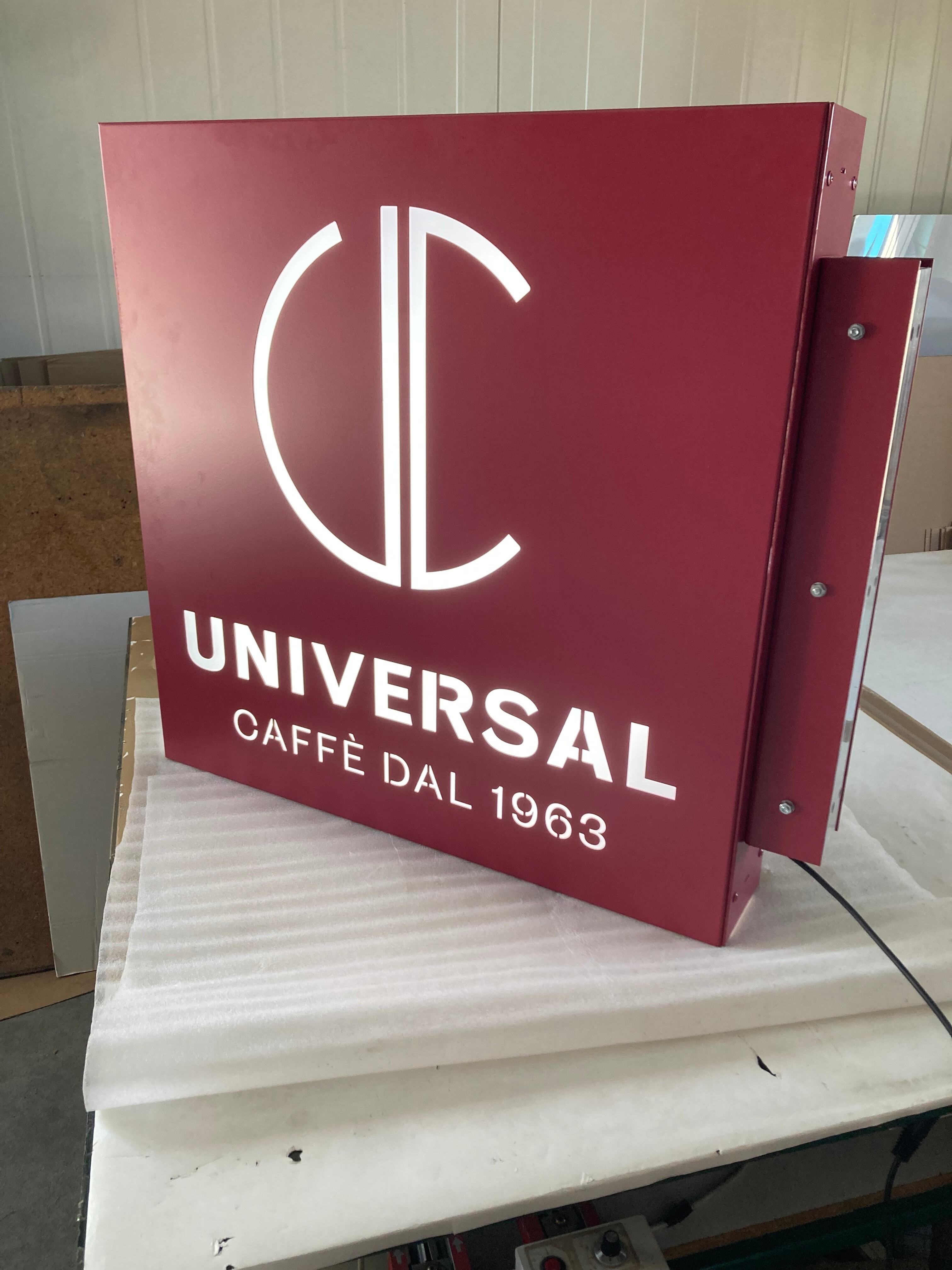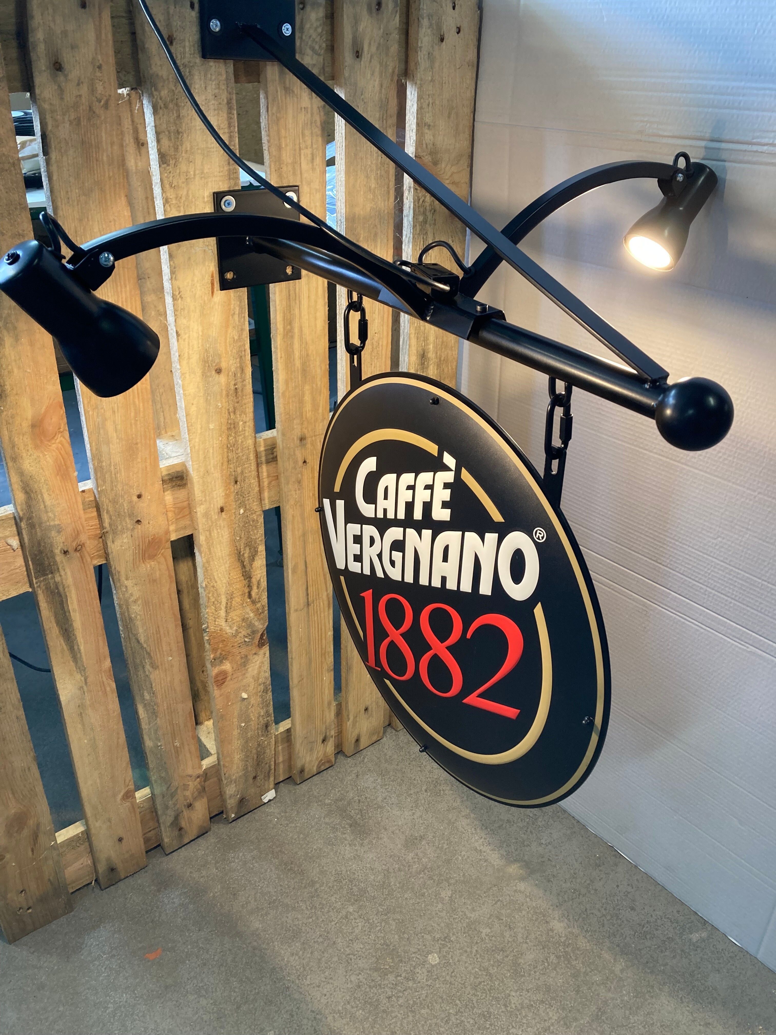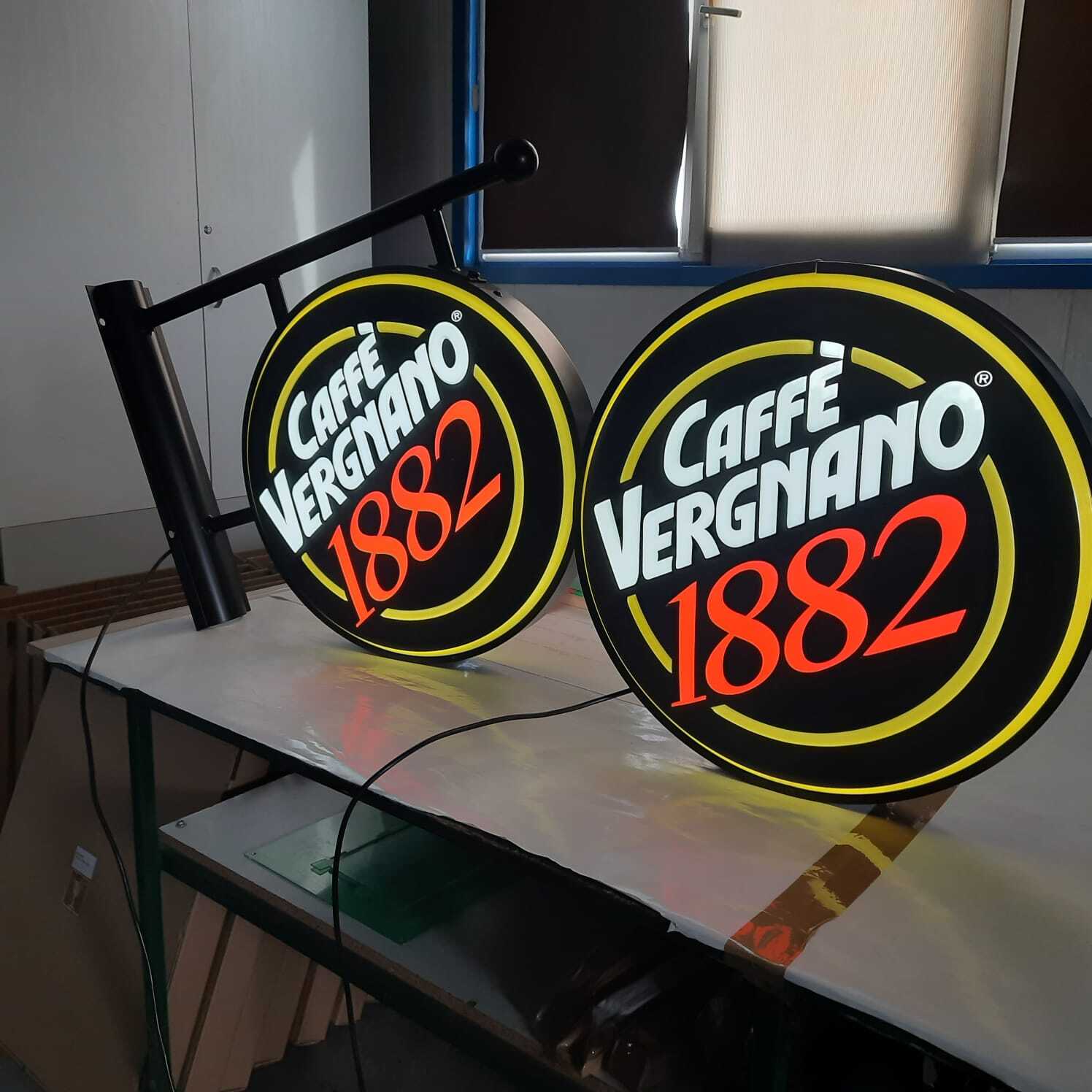 Dwustronny metalowy kaseton zewnętrzny Caffe Vergnano – reklama świetlna LED