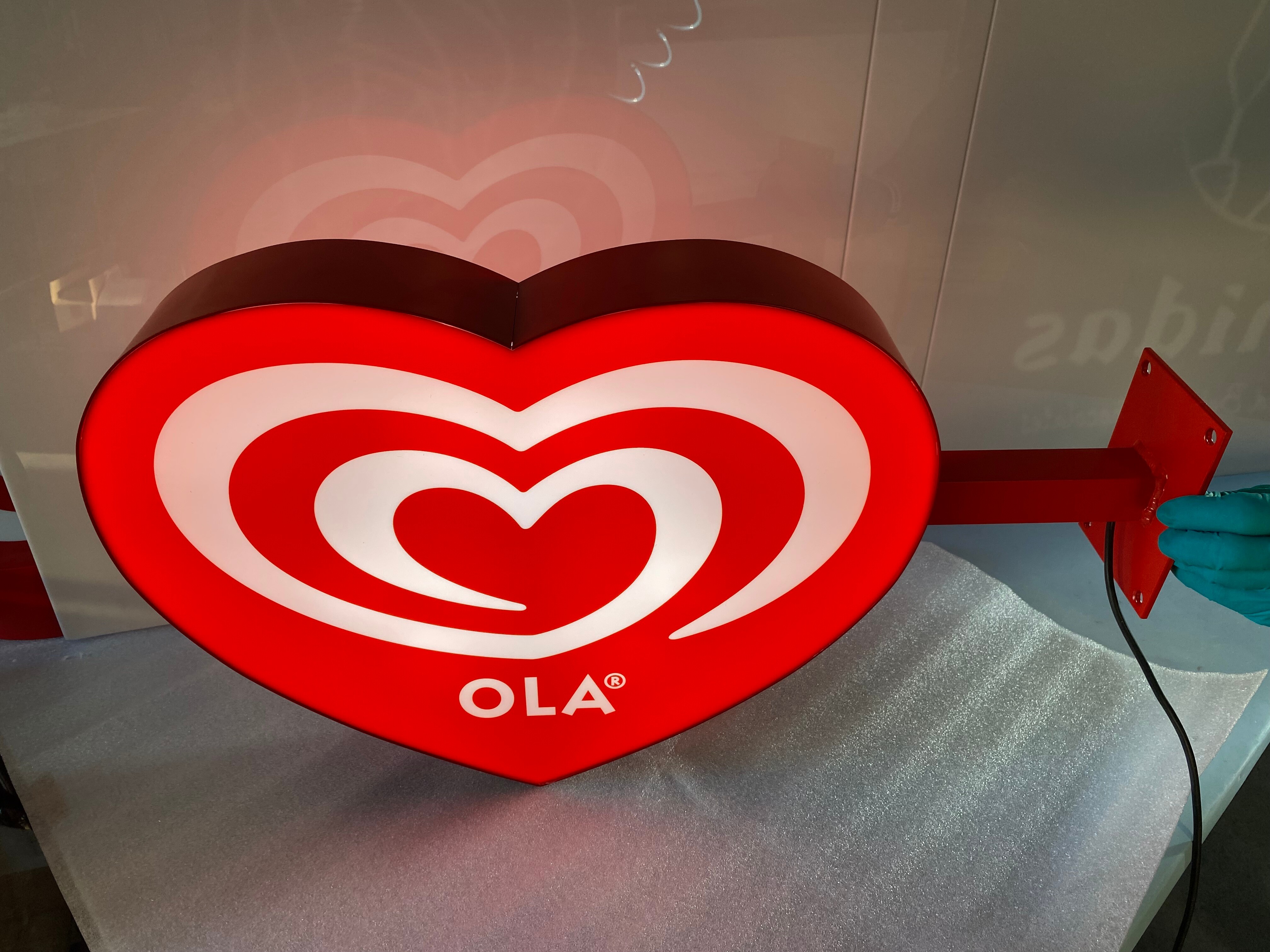 Dwustronny kaseton zewnętrzny Ola – reklama świetlna LED