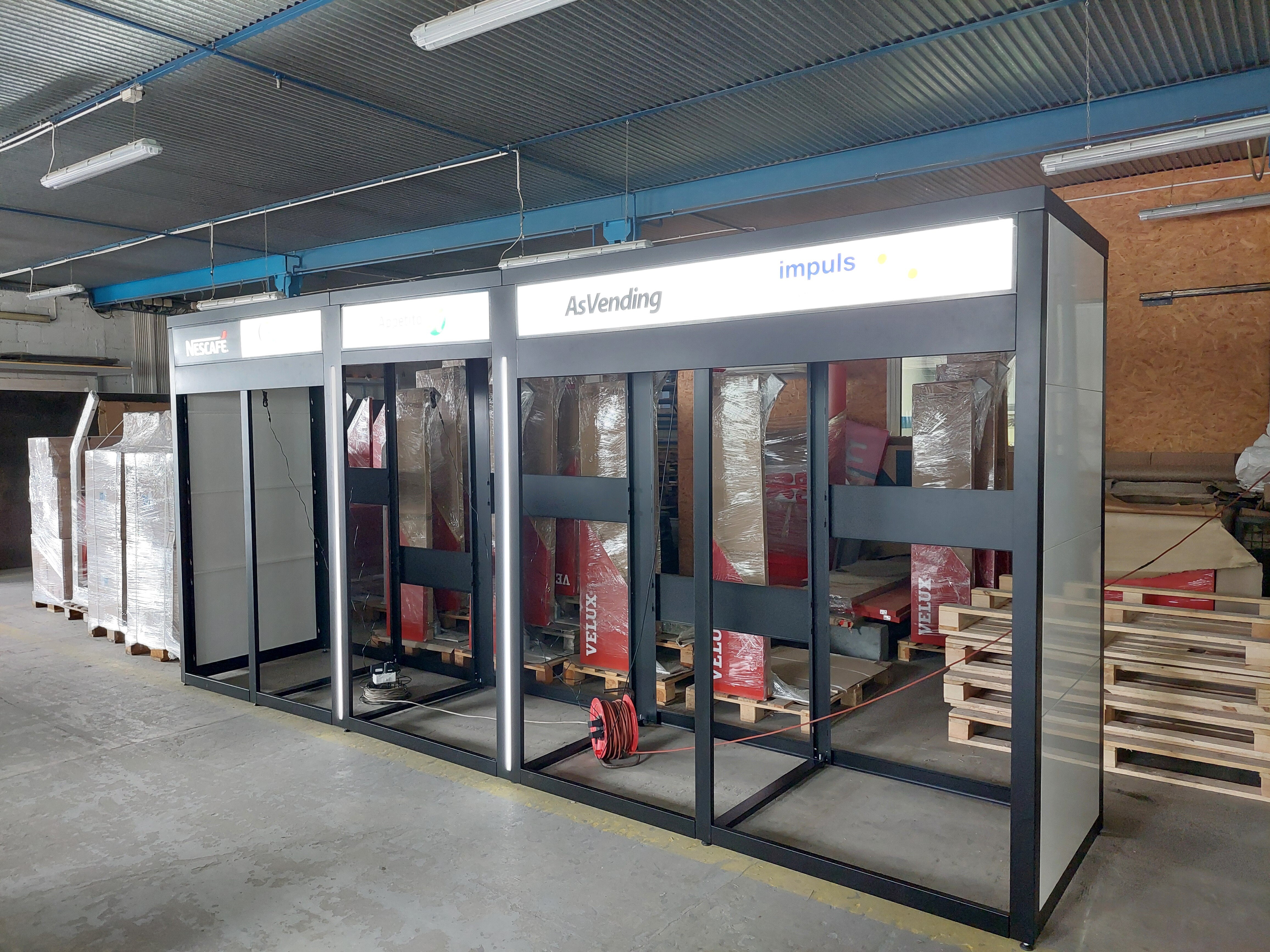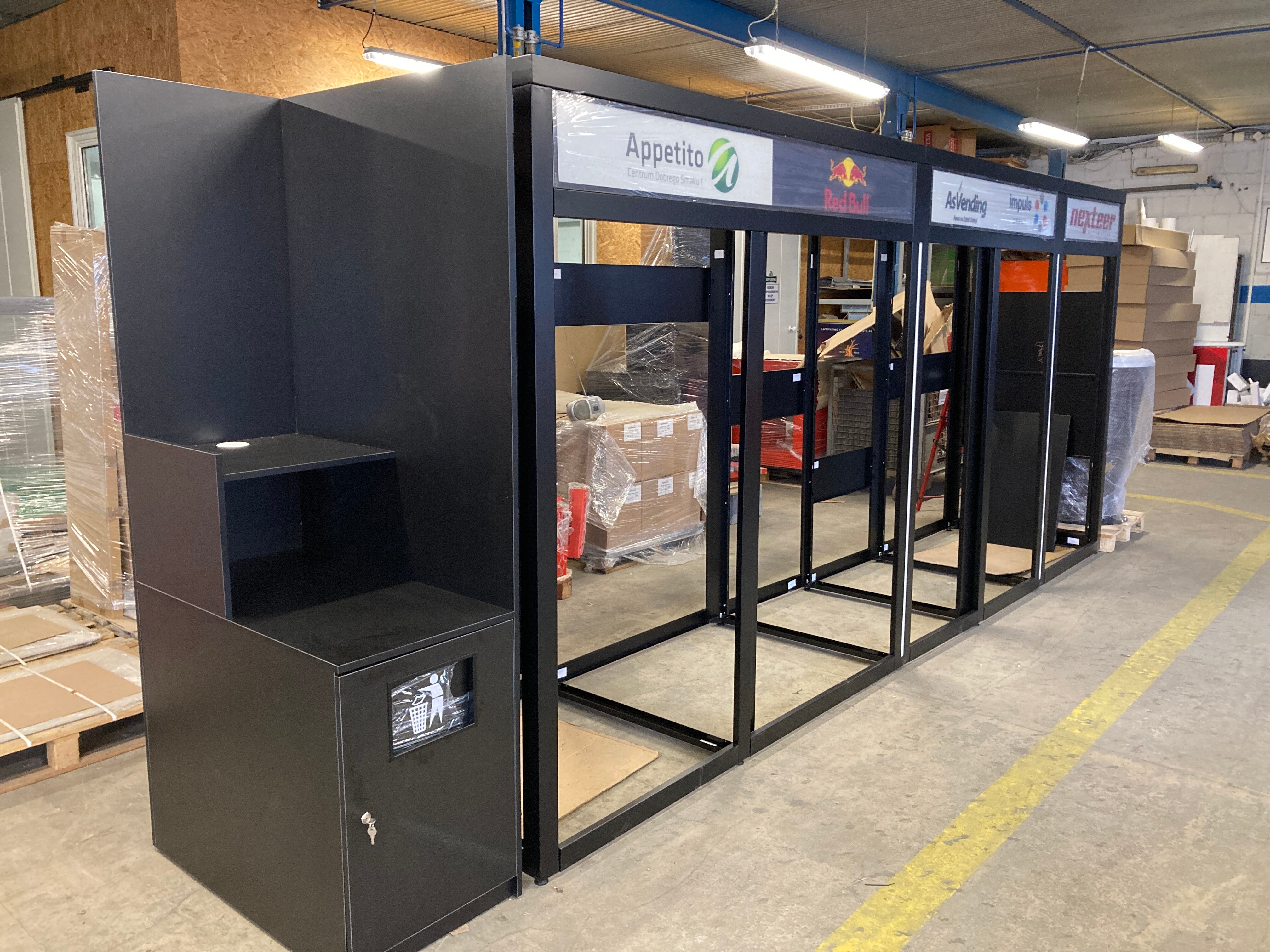 Nowoczesny i atrakcyjny wygląd zabudów vendingowych przyciąga uwagę przechodniów i zachęca ich do skorzystania z oferty zawartej w zainstalowanych maszynach vendingowych. Dodatkowo, oferowany przez nas system obudów vendingowych, zapewnia ochronę automatów przed czynnikami zewnętrznymi i aktami wandalizmu.